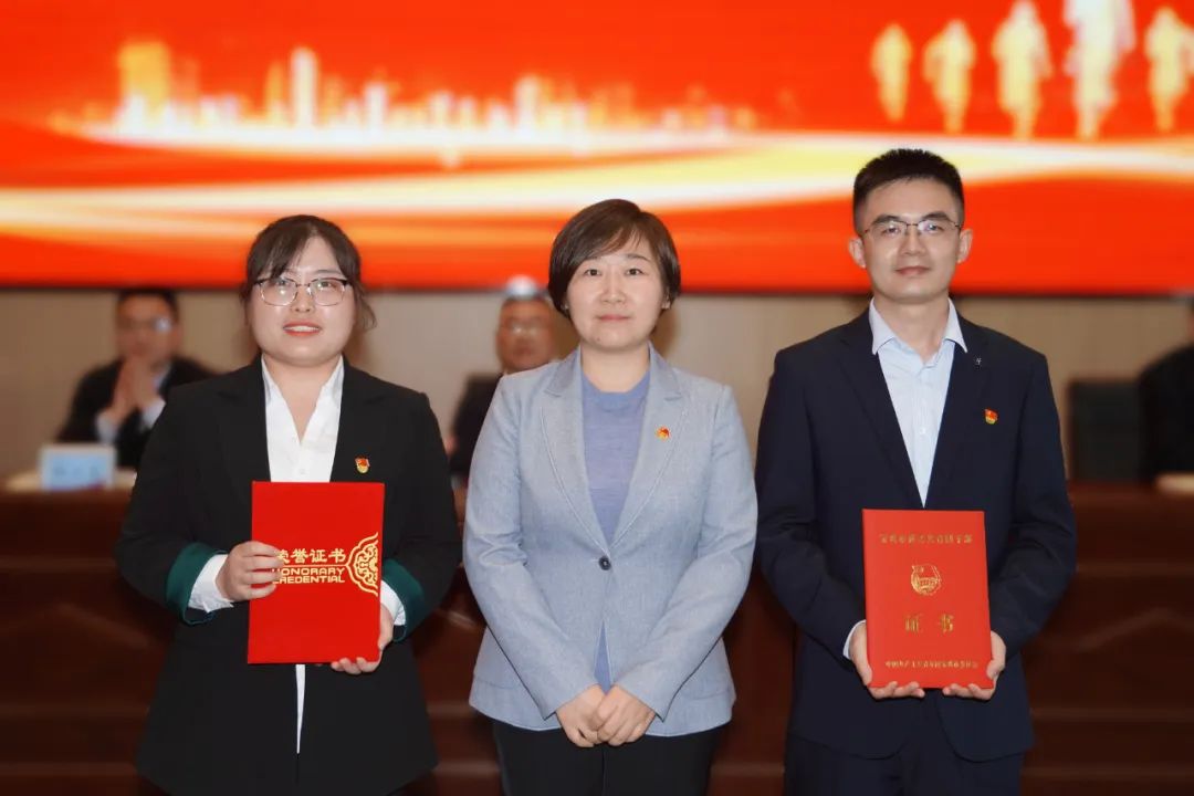 高婷為寶雞市第二屆“最美青工”胡瑾、優(yōu)秀共青團干部牛力頒發(fā)證書