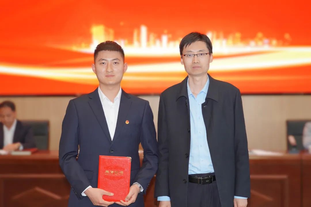 楊宏亮為寶雞市優(yōu)秀共青團員馬迪、杜浩頒發(fā)證書